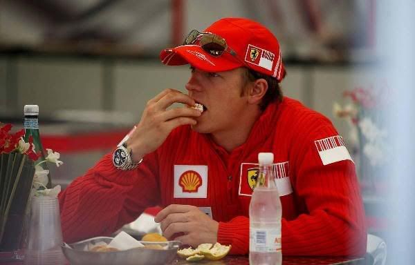 Yes, that really is Kimi. In the army. And is it just me, or does Kimi look very smug? Also, I would very much love to be the 4th guy that Kimi approached. Anyway... Happy birthday Kimi Raikkonen! The 2007 World Champion turns 29 today! And look, he doesn't even look 29! How awesome is that? ![]() "Super awesome!" smiles Kimi. Fine, the wrinkles around his eyes are a bit of a giveaway, but still, he looks so youthful! ![]() It must be the fruit he's eating that keeps his skin glowing and supple. Remember kids, eat your fruits [AND VEGETABLES!!!!!!]! That is all. Euis |
